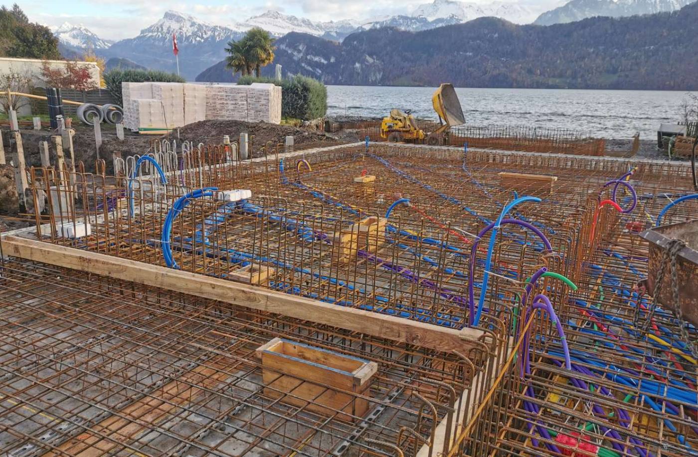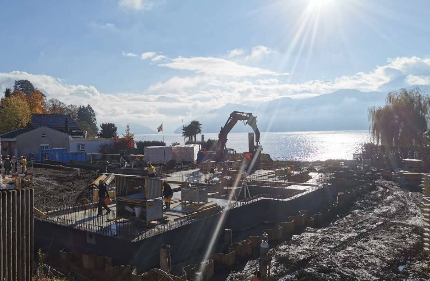 Diese Villa wurde an exklusiver Lage direkt am See bei der ehemaligen Werft erstellt. Die Skelettbauweise im Erdgeschoss ermöglicht einen kompletten Ausblick auf den See. Um den schwierigen Baugrundverhältnissen Herr zu werden, wurde das Wohnhaus komplett auf Pfähle erstellt.