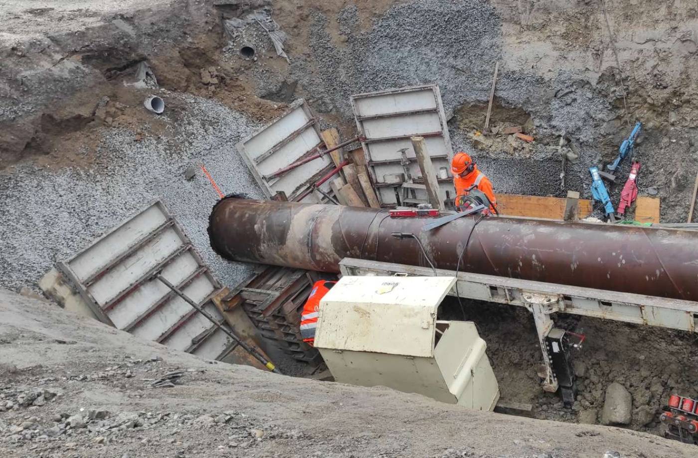 Aushubplan mit Böschungssicherung und Entwässerungsplanung