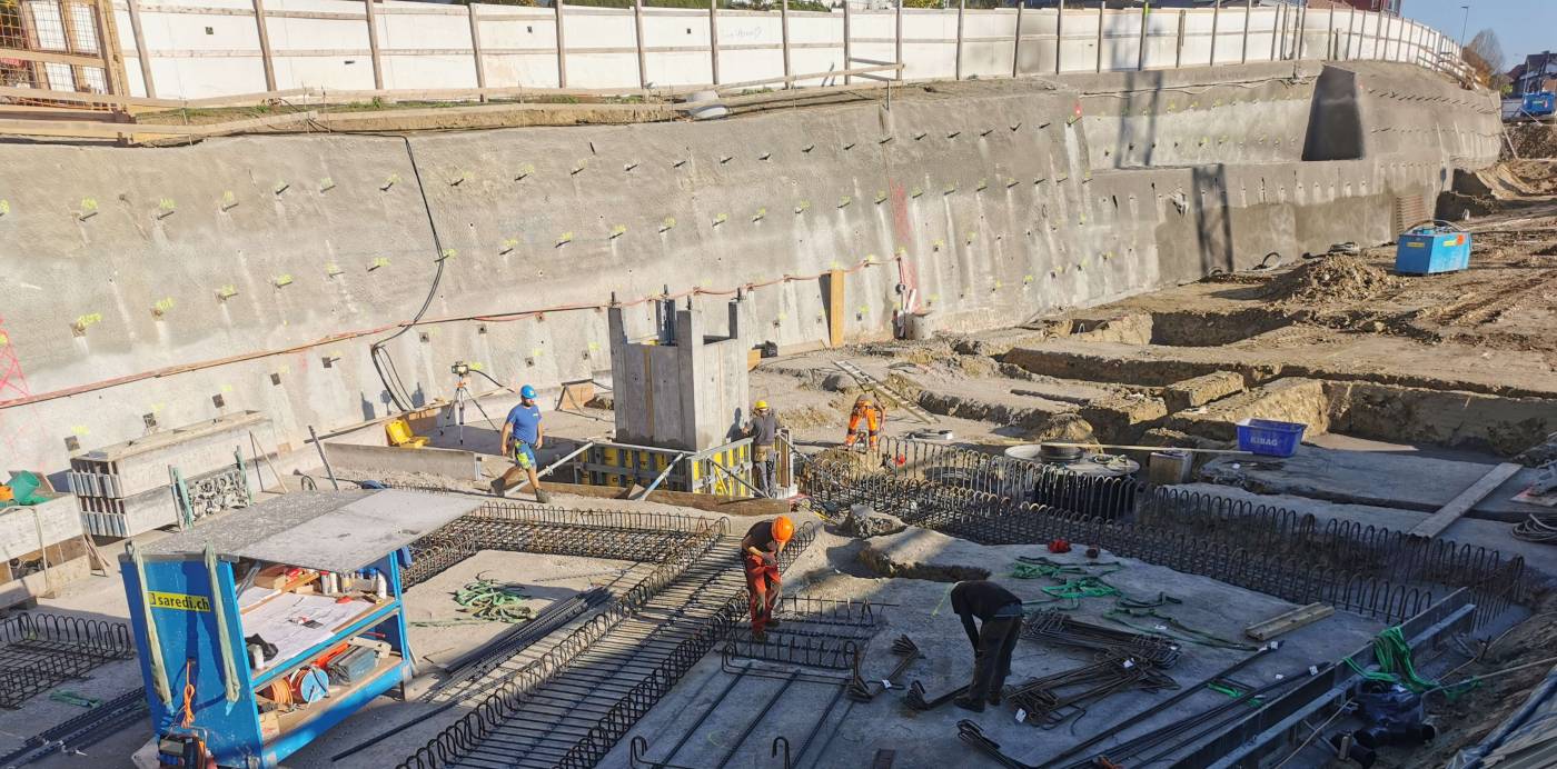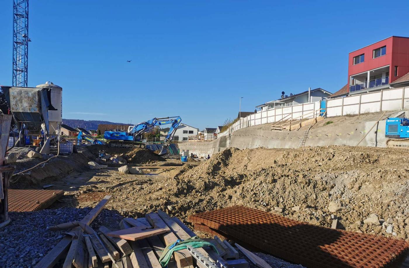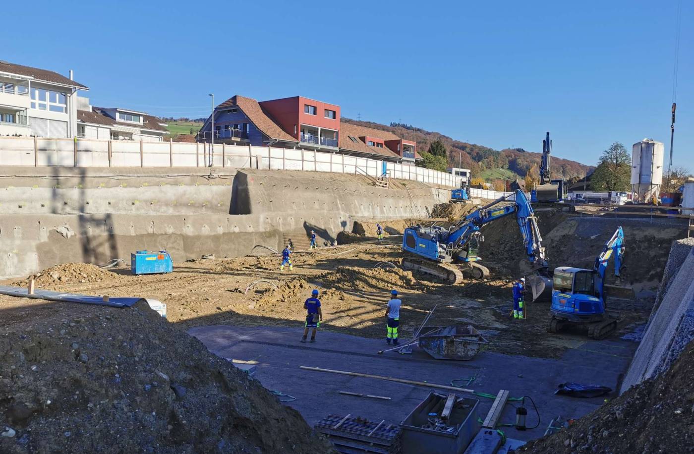 Wohnüberbauung mit 5 Mehrfamilienhäuser und einer gemeinsamen Einstellhalle mit einer Gesamtlänge von 120 m. Aufgrund der knappen Platzverhältnissen wurde der Baugrubenabschluss mit vernagelten Spritzbetonwänden gesichert. Im Bereich der Kantonsstrasse wurde der Baugrubenabschluss für maximale Standsicherheit mittels Injektionsdübel gesichert.